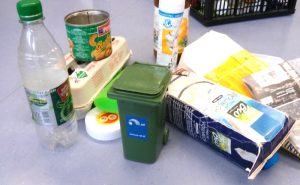 Frau Walter von der AVR war am Freitag bei uns in der 1b und wir haben Müll sortiert. Eine Mülltonne war grün und eine war schwarz und eine blau und eine braun. Alle Sachen mit dem Wertstoffzeichen kommen in die grüne Tonne.